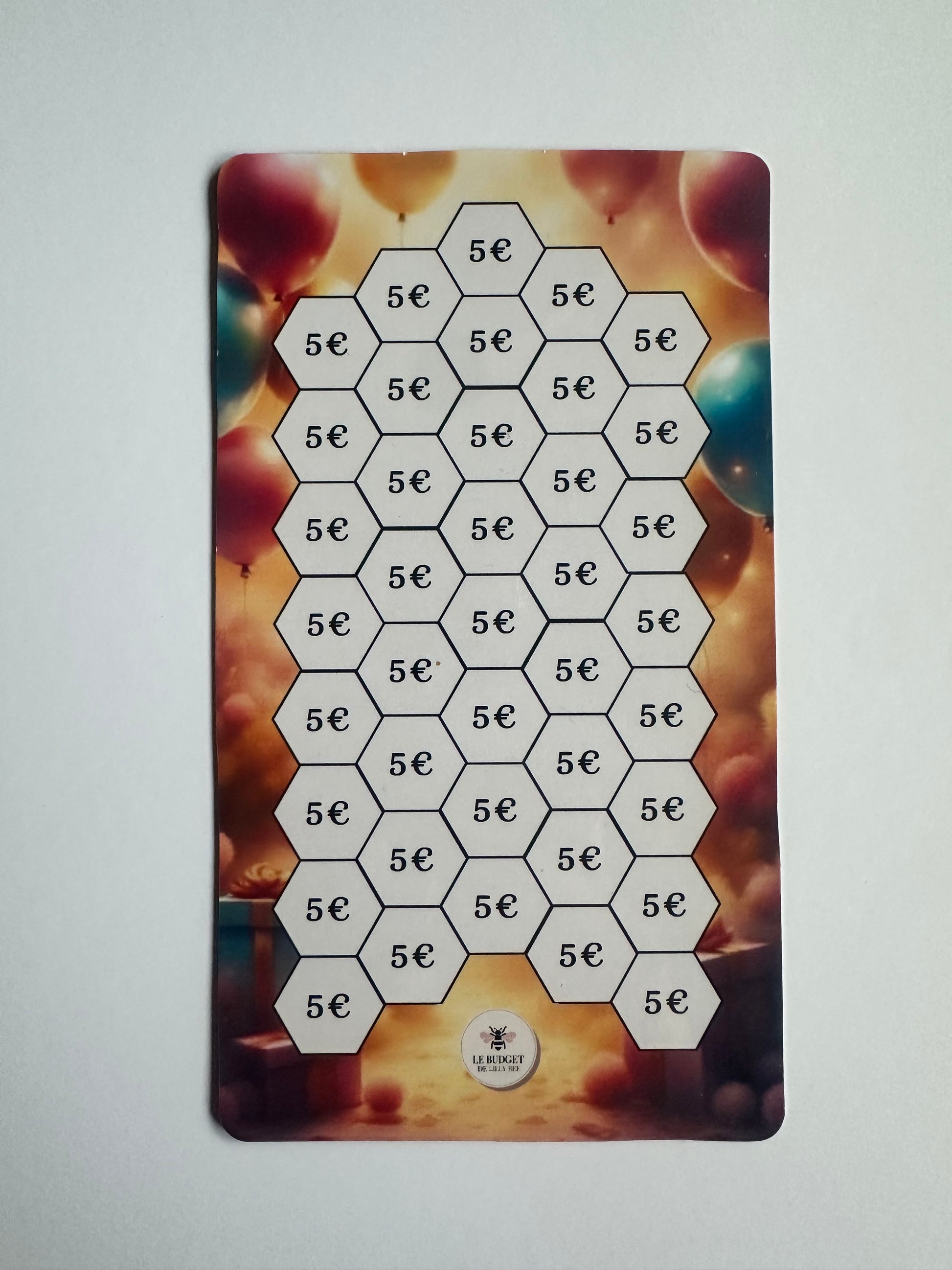 Cette carte Défi 5€ te permet de suivre ton épargne visuellement : chaque case “5€” correspond à 5€ mis de côté. Tu avances à ton rythme, sans calculs compliqués.